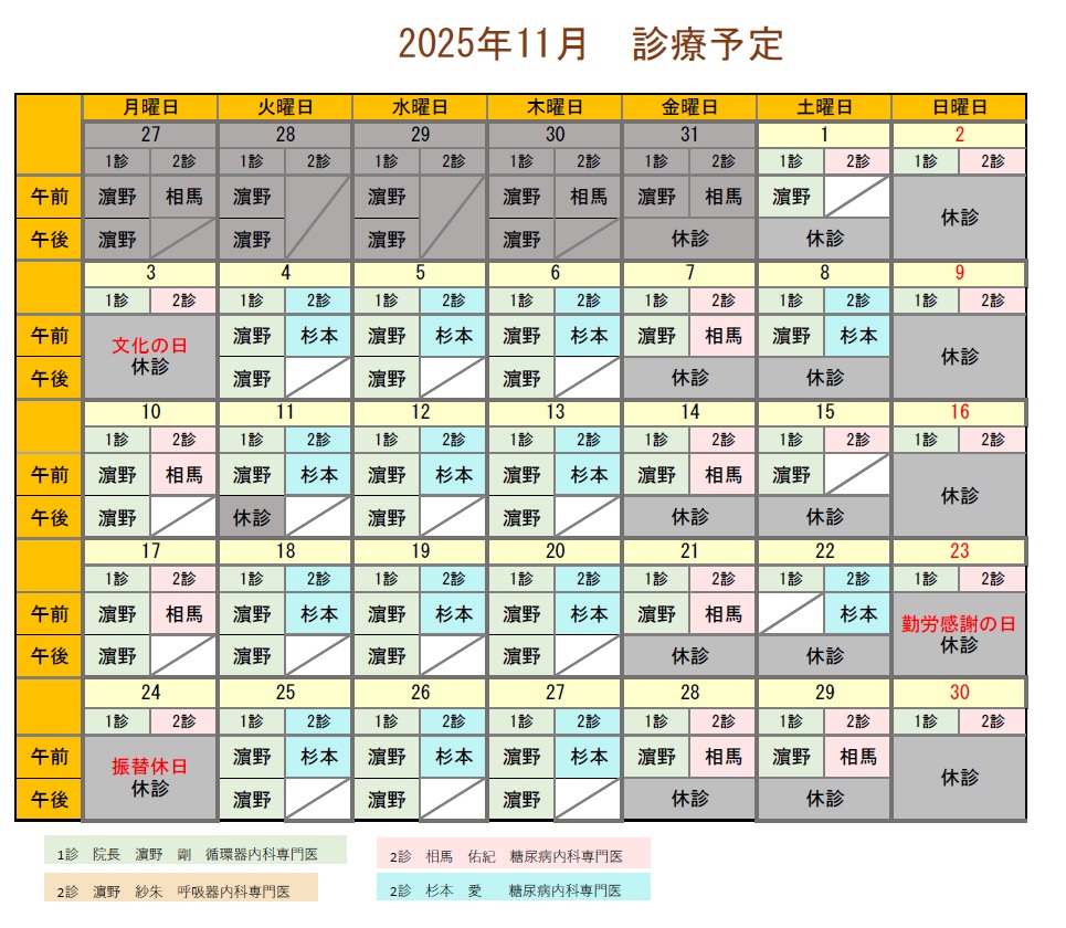 | 診療時間表 | 月 | 火 | 水 | 木 | 金 | 土 | 日 |